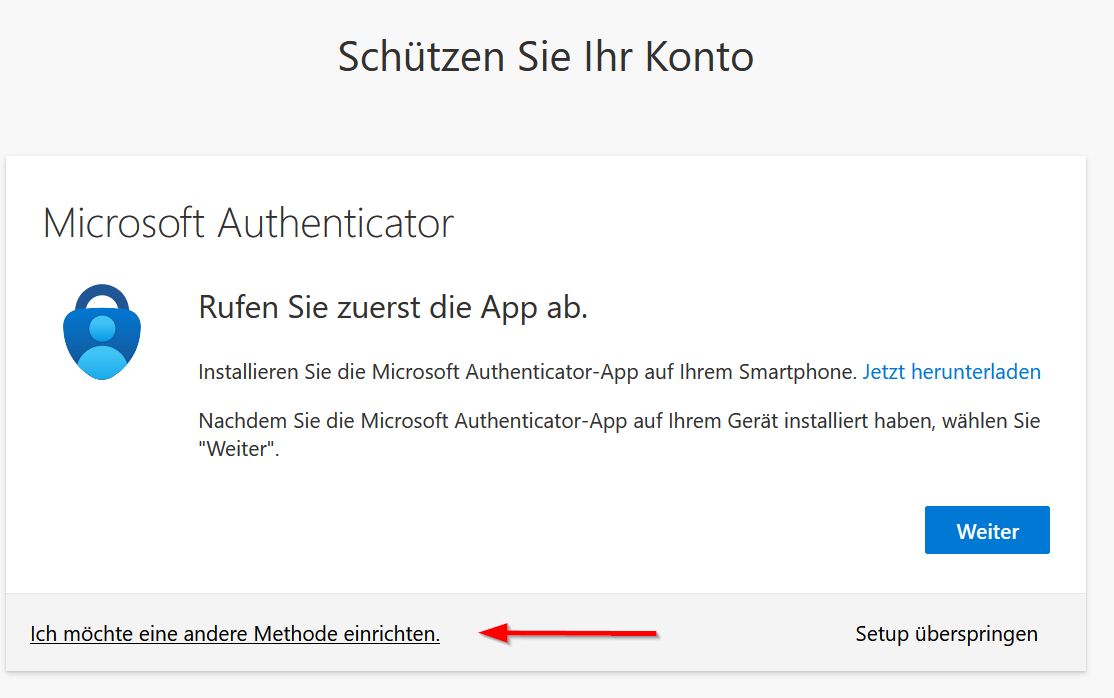 4. Im weiteren Schritt wird Ihnen vorgeschlagen, eine App auf ihrem Smartphone zu installieren. Sie können aber gerne eine andere Methode Wählen: