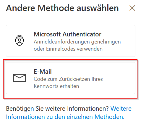 3. Nachdem Sie Ihr Passwort eingegeben haben, werden Sie zum einrichten einer weiteren Login Methode geführt: